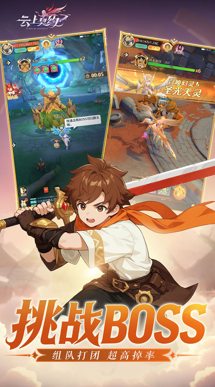 《云上契约》是一款异世界日系幻想风RPG放置手游。剑与魔法的魔幻大陆,在远古时期,强大的龙族率领其他生物包括人类对大陆进行开拓与发展。到了现代,艾瑞利亚大陆变成生机勃勃的丰饶之地,不同地貌生存着不同的精灵与魔物,但龙族却在岁月中不见了踪影。阿斯塔亚王国的冒险王罗布诺,在云端发现消逝许久龙族的踪迹,此举激发了举国的寻龙狂潮。国王便立下契约称率先找到龙的冒险家,便能获得王国的最高荣誉——冒险王,至此开启了一段“大冒险时代”