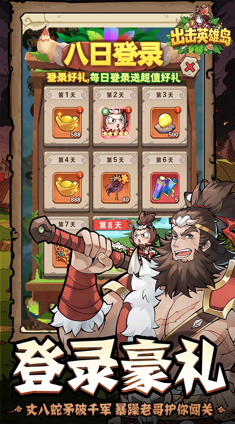 出击英雄岛(0.1折送小乔)当三国名将齐齐穿越石器时代,一场脑洞大开的爆笑碰撞就此上演!独创三国 × 石器时代题材,搭配轻松放置挂机玩法,化身咸鱼主公,告别爆肝,躺着也能飞速变强!离线自动征战,上线一键收割海量资源与丰厚奖励,轻松养成无压力。游戏采用超萌 Q 版三国画风,无厘头剧情颠覆传统三国印象,笑点密集、惊喜不断,带你体验前所未有的反差萌三国世界!