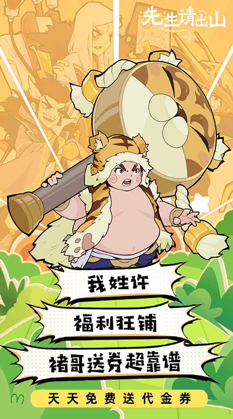 5090抽请先生出山!每日100代金券请先生出山!!免费红将请先生出山!!!再不出山,小貂蝉就要被刘备抓到江东挟以令诸侯了!魔性三国马上出山! 《先生请出山-免费版》重磅来袭,每日免费100无门槛代金券,让你零氪解锁三国乱世冒险。打破传统三国手游的厚重严肃,置身被洪水淹没的平行三国世界,化身主公乘坐木筏搭建浮城,招募Q版搞怪名将,解锁“火锅水雷”“草船箭雨”等离谱技能,3分钟一局爽快割草,轻松解压不费肝!更有充值低至骨折、免费5090抽、元宝无限送的专属福利,零氪也能满配神将,平民玩家也能轻松称霸乱世,不用氪金也能体验顶配游戏快感,开启不一样的魔性三国之旅~
