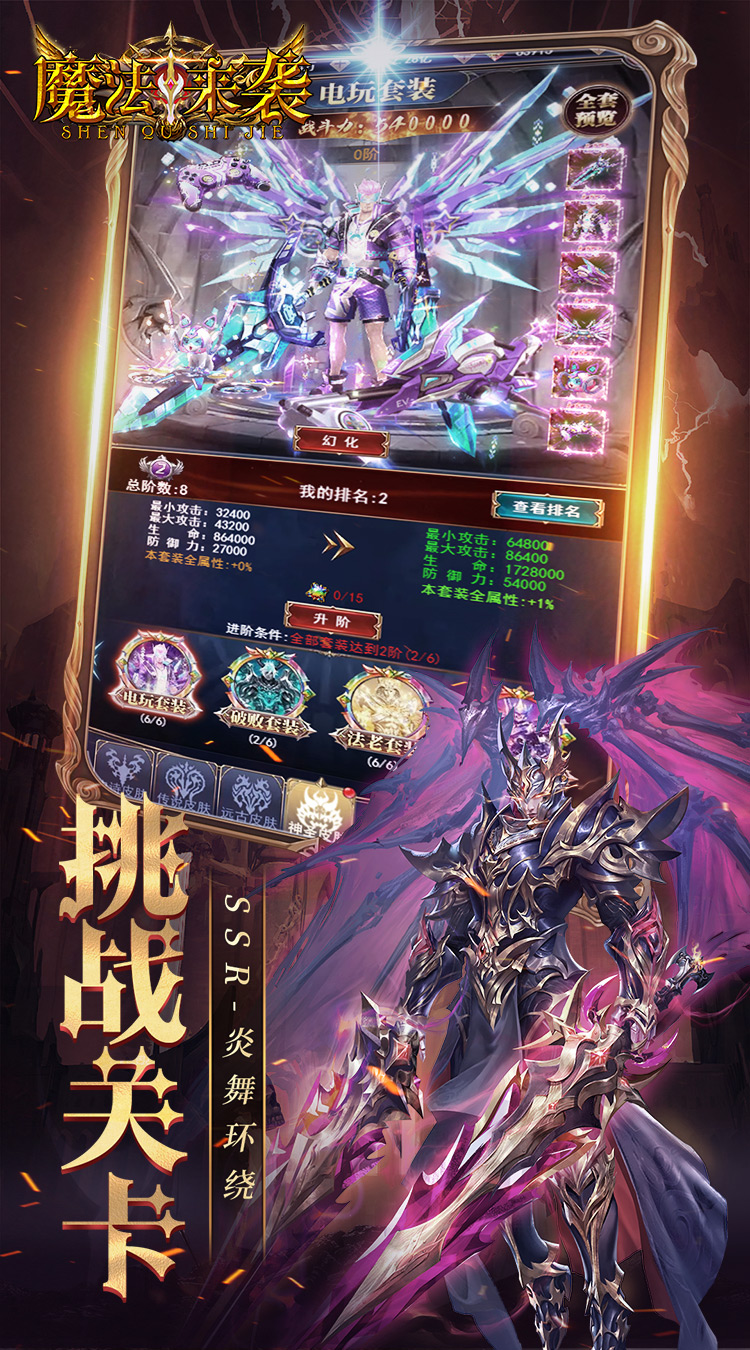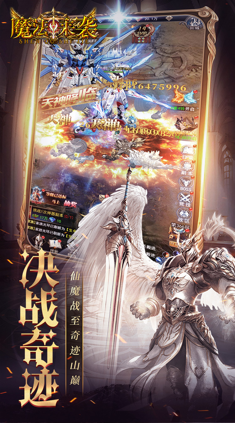 神级美学魔幻RPG大作《魔法来袭》!游戏深度还原MMO核心玩法,多种突破乐趣更多。美术全面升级,超清画质高精度建模,震撼的战斗技能效果丝滑多变,自动挂机刷怪也能帧帧打得漂亮。上千套华美造型,强化流光表现让装备更炫:有大排面的高贵坐骑、炫彩夺目的大翅膀、给力强化不断生成的神器神装等,给你颜值新高度!更有精灵跟随助战,天神随时附体畅享实力碾压全场的痛快。游戏可在线转职自由体验多职业乐趣,进击血色之地、恶魔要塞暴涨经验,于新剧情中亦可追忆回味青春荣光!还有战盟盟主虚位以待,激烈的跨服战甚至百团大战一触即发,快来沉浸式探索唯美的魔幻世界,燃动你的战盟之魂吧!
