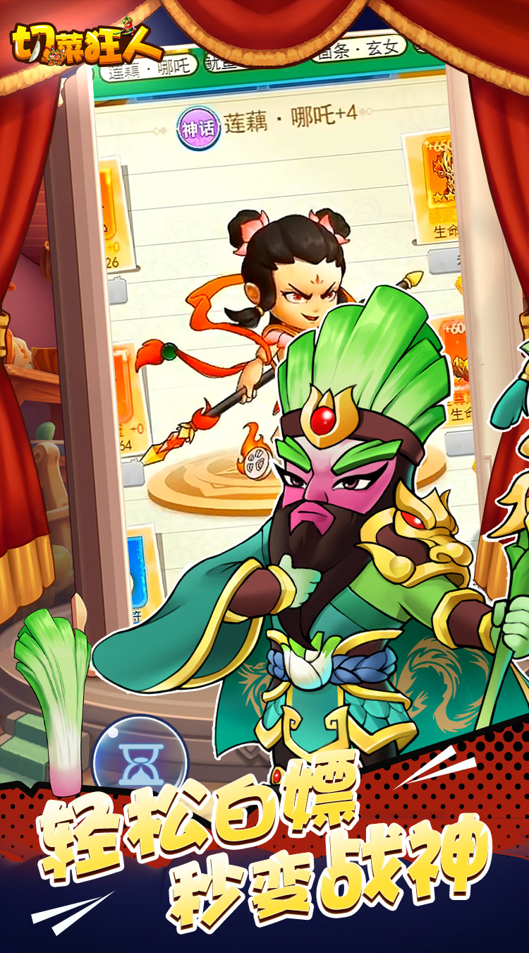 《切菜狂人》是一款超上头的Q版休闲挂机游戏。水果蔬菜混搭,形象搞怪萌态百变,新英雄新玩法,悟空、哪吒、八戒、赵云、关羽、吕布应有尽有,多样英雄任意搭配阵容,轻松闯关,还有大战僵尸,爬塔等趣味玩法,欢乐集结,畅玩不腻!创角648充值卡,悟空师徒与你一同过关斩将,绝世厨神竞技,食神之塔,艰险重重,你将勇往直行,击败强大敌人!