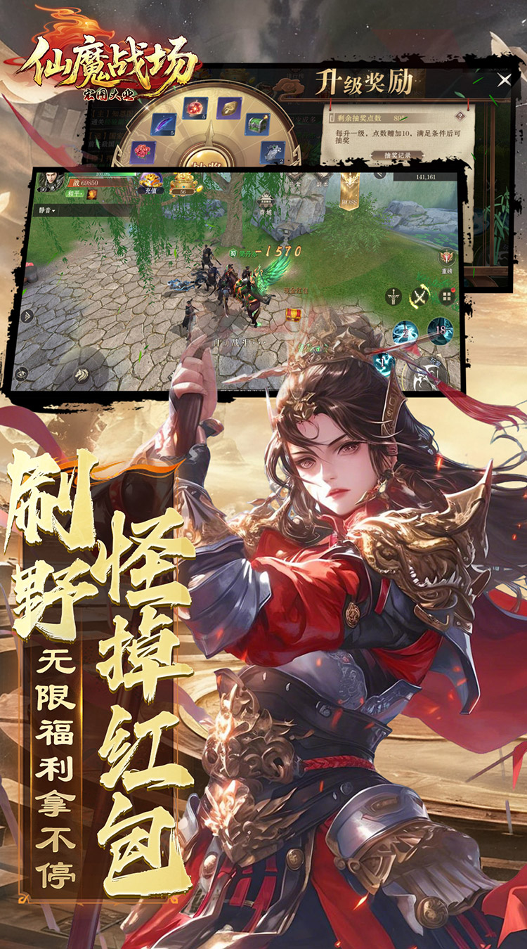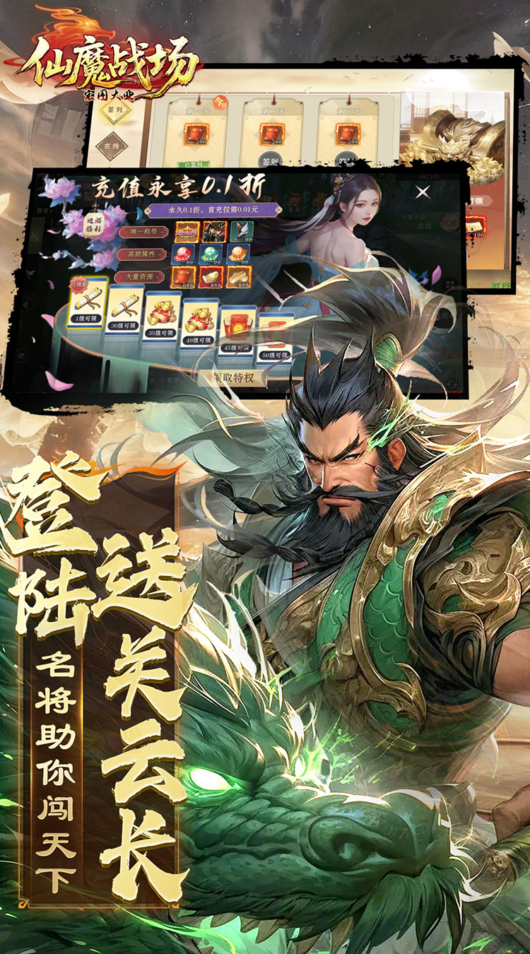 《仙魔战场》是一款以三国乱世为背景的史诗级MMORPG。在这里,您将亲历群雄逐鹿的壮阔历史,书写属于自己的传奇篇章。 游戏再现了官渡赤壁等经典战役,您可化身勇冠三军的猛将,亦可成为运筹帷幄的谋士。选择魏蜀吴不同阵营,招兵买马,发展城池,与盟友共谋天下大势。 特色国战系统让您体验千人对垒的震撼,策略配合决定战场胜负。丰富武将系统可收集培养名将,搭配独特技能组合。更有跨服争霸、皇城争夺等多元玩法,让每位玩家都能在乱世中找到自己的位置。 招兵买马,缔结同盟,发展城池,与万千玩家同台竞技。在这片烽火连天的土地上,是成为一方霸主,还是辅佐明君一统山河?一切由您抉择。