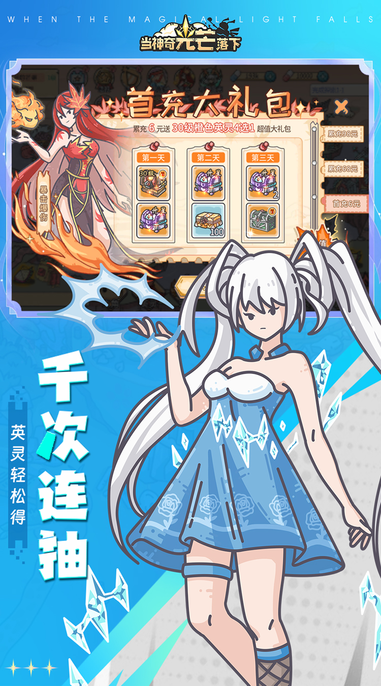 1、首续0.1折,每日送6480元永久代金券 2、创角即送红色英灵任选,强力角色免费拿 3、多倍产出,助力畅爽体验 4、每日领十连,无限连抽抽到爽