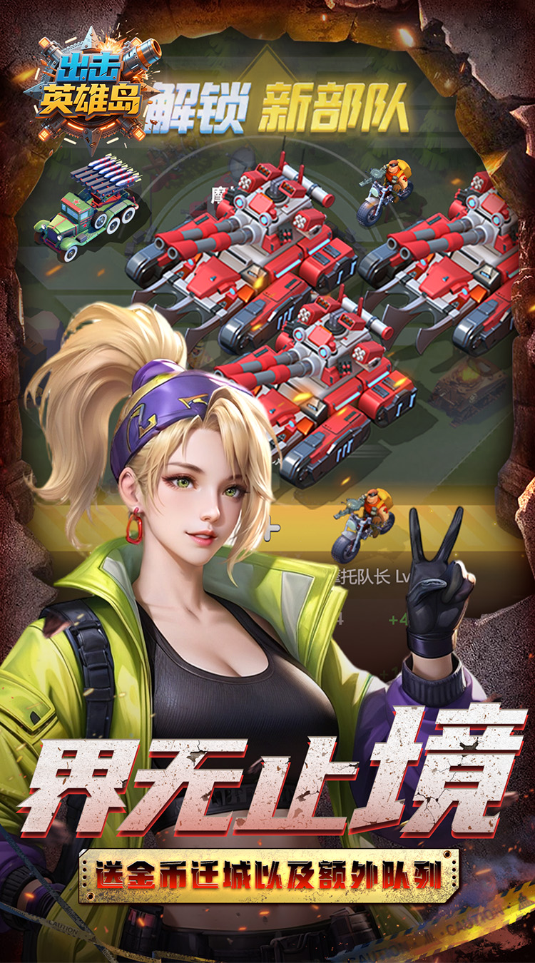 ★ 开服狂欢:创角送至 VIP8,免费尊享 VIP1-VIP,8 特权礼包 ★ 充值卡高爆:专属高爆地图玩法,充值卡刷不停,充值卡1:10钻石 ★ 登录送新兵闪耀大礼包:648元充值卡、城市外观-璀璨星河*1、铭牌外观-精锐铭牌*1、队列外观-武装矿车*1 ★ 送万充、送千抽:在线活跃送10000元充值卡、高级英雄招募券*4000 ★ 新人送全军出击大礼包:白色经验书 20、绿色经验书 20、蓝色经验书 20、紫色经验书20、橙色经验书*20 ★ 直送三军英雄大礼包:橙色英雄随机箱*1、全军英雄碎片随机箱*88 ★ 进游送无限探索大礼包:金币*288880、迁城*1、额外队列2天*1 ★ 30天签到送30000元充值卡:新兵试炼30天每日签到领取1000充值卡! ★ 7天超嗨签到:送英雄专属技能、巨量万能碎片、随机红色英雄、高阶强化组件、海量充值卡、豪华装饰品、稀有兵种装备; 更有1元秒杀、下载有礼等惊喜等着你!