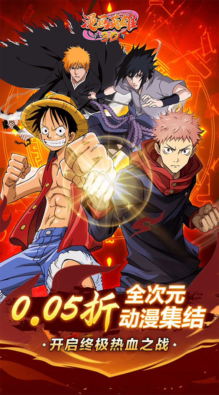 《漫画英雄3D(0.05折次元乱斗)》是一款颠覆传统的横版卡牌手游,集结《海贼王》《鬼灭之刃》《火影忍者》《进击的巨人》《死神》等超多顶流动漫的经典角色,打破次元壁垒,打造史诗级跨作品联动战场!在这里,路飞与佐助并肩作战,炭治郎携手祢豆子对抗巨人,黑崎一护与五条悟展开灵力对决……所有不可能的梦幻组合,皆由你亲手缔造!
