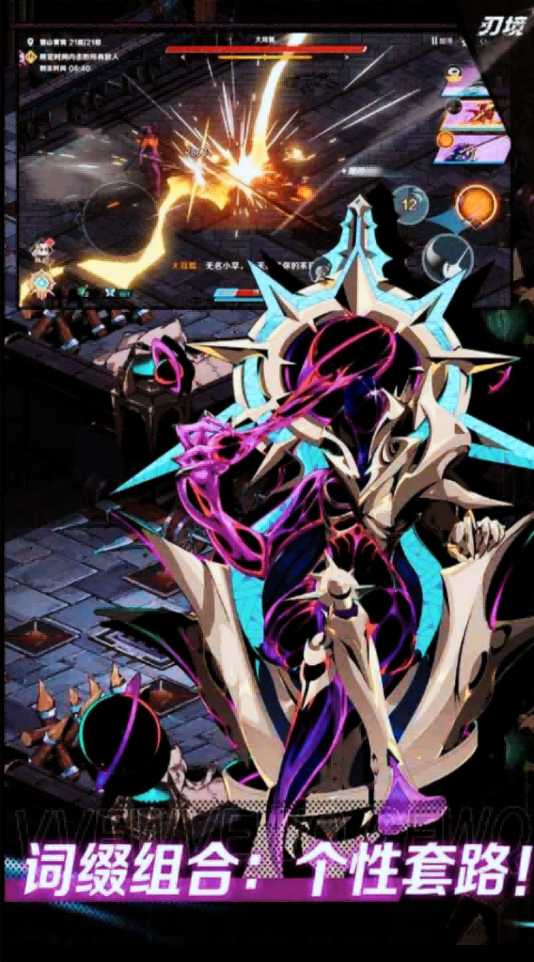 《刃境》是一款 俯视角硬核动作游戏,结合了肉鸽与装备构筑玩法,支持多人联机和自由交易的冒险游戏。拉上你的小伙伴一起踏入神秘莫测的魔界。 在这个充满未知与挑战的世界,你将扮演一位勇敢无畏的人类。意外闯入魔界后,幸运地获得刃神认可,从而能够掌控各种强大神秘的刃。通过巧妙组合装备词条以及 Roguelike 的局内养成元素,你可以塑造出独一无二的战斗套路,实现从初出茅庐的新手到魔界纵横捭阖的传奇英雄的华丽转变。