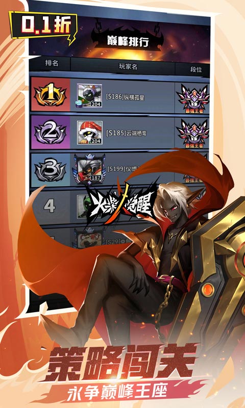1、超低折扣:所有充值0.1折支付,充值比例1:10 2、免费充值:每日免广告领取代金券 3、超快推图:免费激活首充SSR剑心·龙影 4、巨额货币:输入ZQ648领取6480火柴 5、暴爽百抽:输入CK100领取100连抽卷