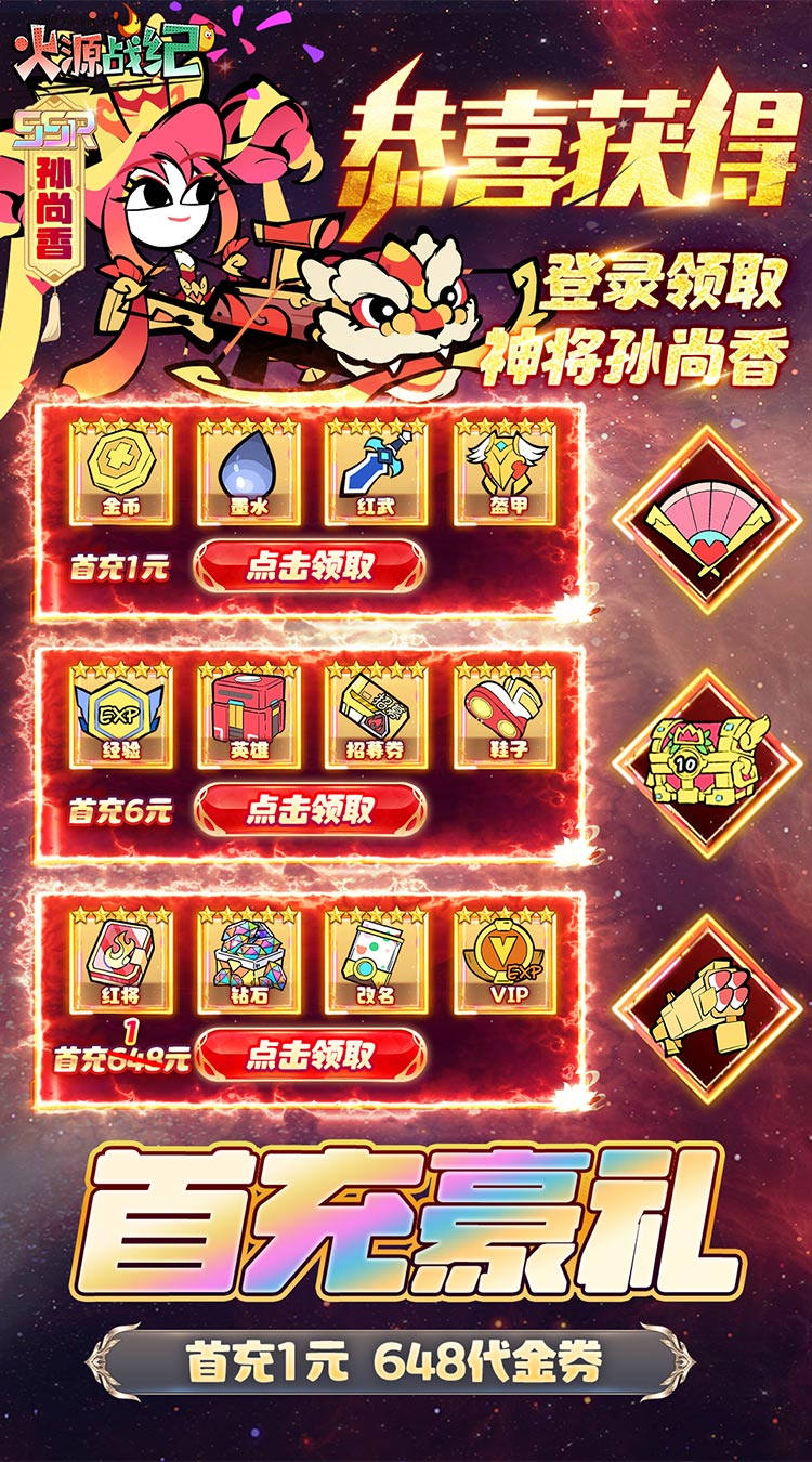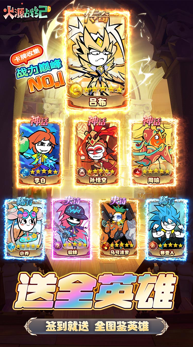 1、每天领:648元游戏代金券 2、极速版:10倍挂机收益 3、全图鉴:签到送全英雄 4、放心养:直送满星吕布 5、策划承诺:原版物价,无数值膨胀