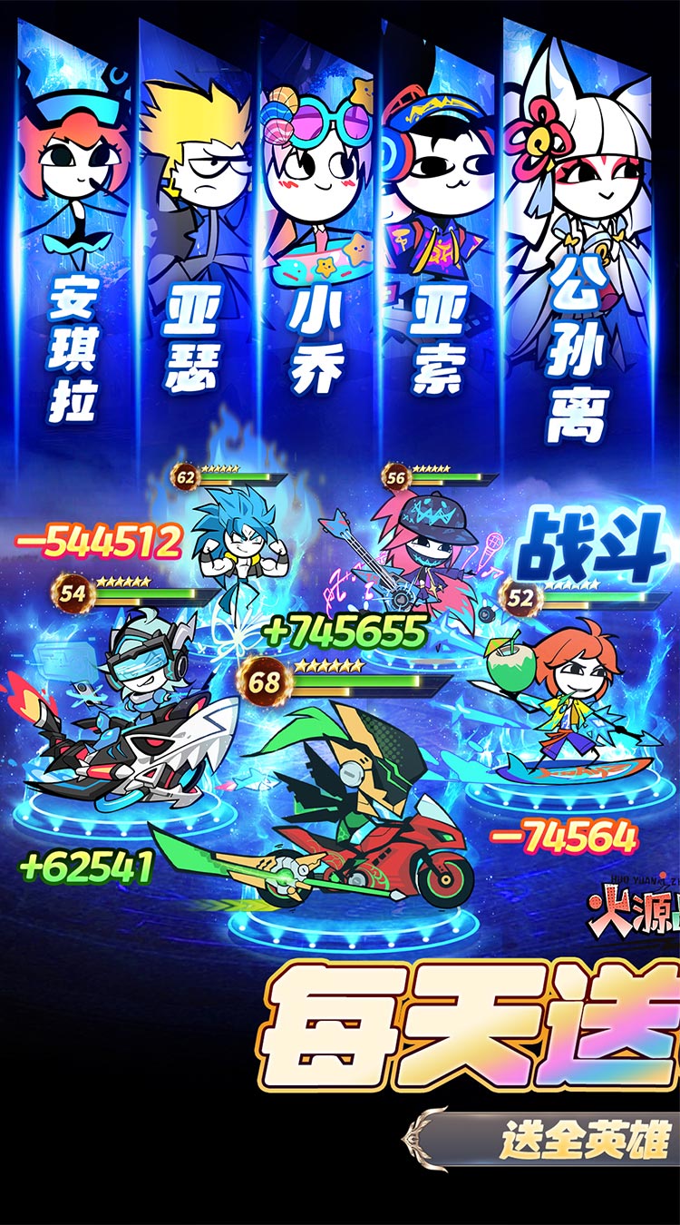 《火源战纪》是一款采用了简笔漫画画风的火柴人对战手游。游戏中玩家们将扮演一名搞笑魔性的火柴人角色,需要合理的来搭配阵容,用挂机放置的玩法参与每一场的对局,完成闯关的任务挑战各种的副本,踏上有趣好玩的冒险之路。游戏中搞笑的角色人设以及沙雕无厘头的剧情,能够带给玩家们无尽的欢乐,感受不一样的游戏体验。