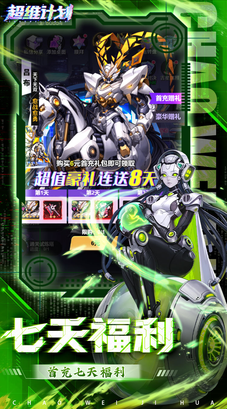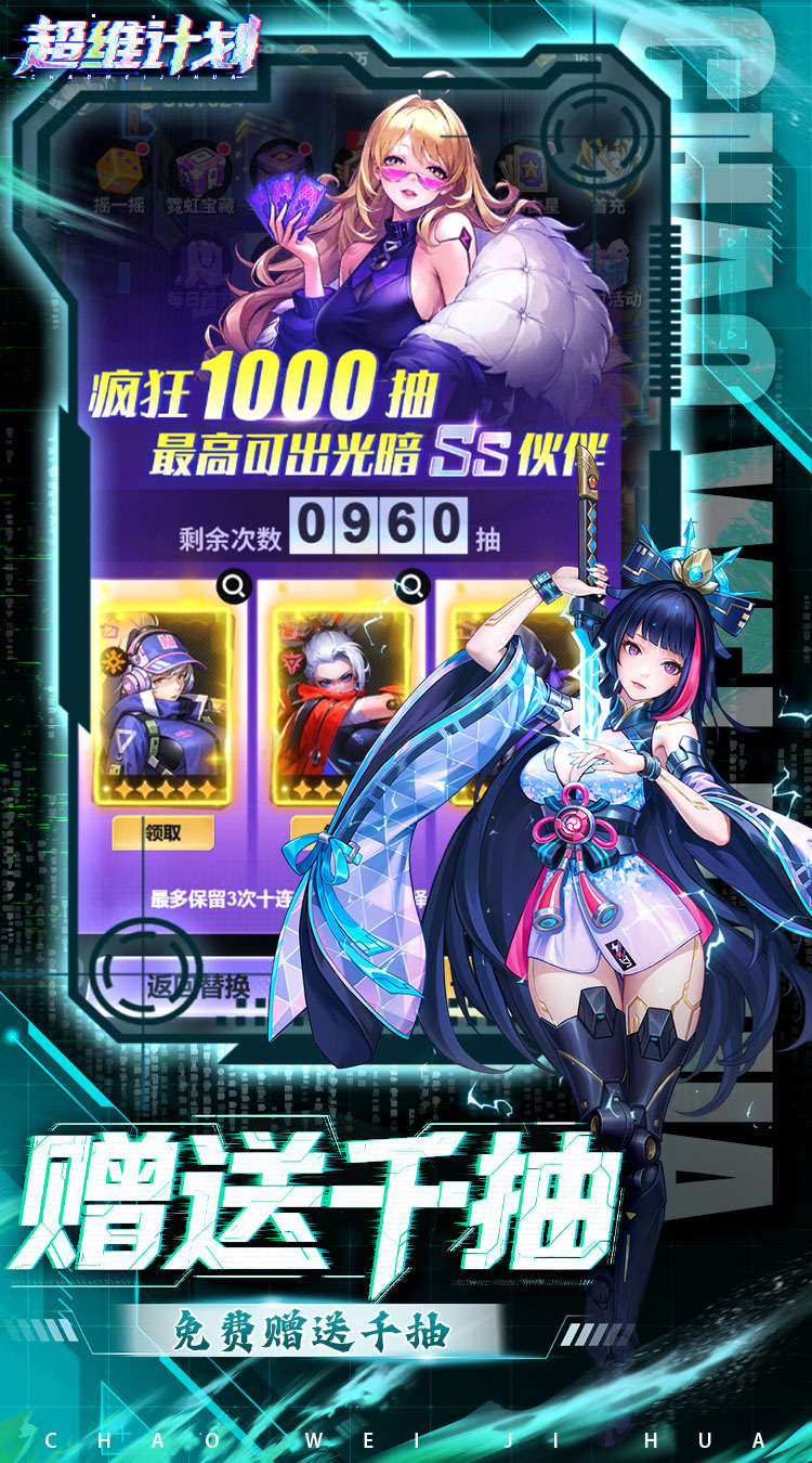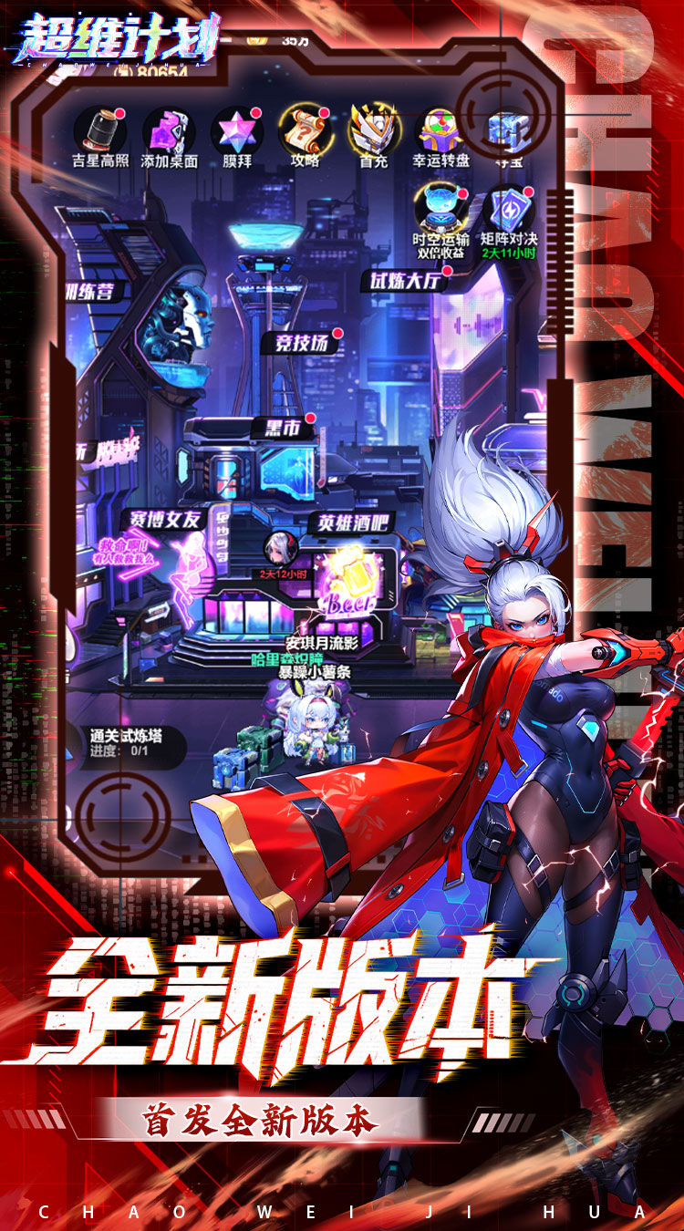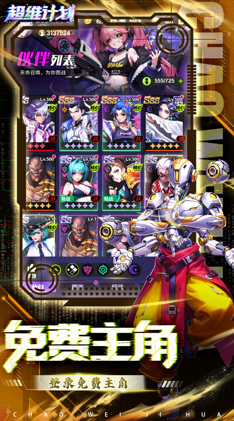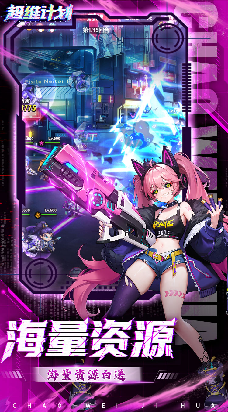 《超维计划》是一款融合了赛博朋克风格的卡牌策略手游。 游戏以未来科技世界为背景,玩家通过收集和培养独特的赛博伙伴,组建强大的阵容参与战斗。