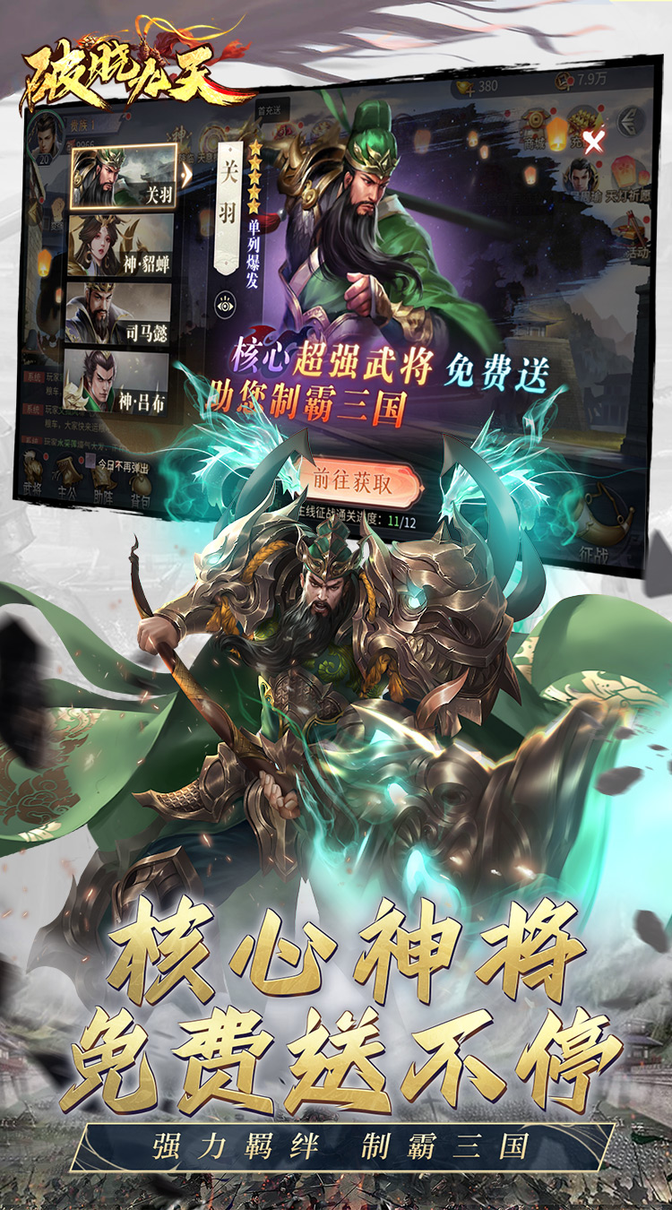 1.【充值返利】游戏内任意实付充值立返100%等额现金券!超级性价比! 1.【天意拟定】升级每一阶段,免费尊享十连抽,必得五星红将! 2.【神魔拟定】累计登录游戏,超强神魔武将自选! 3.【神将降临】完成任务,超强阵容免费领取,强力羁绊助您制霸三国! 4.【12星周瑜】推图挂机送周瑜,手指轻点福利不停,最高送至12星! 5.【天命光环】初始光环免费赠5星神·诸葛亮,神罚天降,全屏秒杀无敌手! 6.【签到赠礼】签到三周豪礼连连,海量元宝、红色神武、自选神魔收囊中! 7.【秣马厉兵】日常任务轻松赢绝版时装,还有海量元宝等你来拿! 8.【持续更新】海量猛将陆续登场,助阵主公乱世称王! 9.【玩法丰富】轻松探索三国世界,体验不一样的乱世之旅!