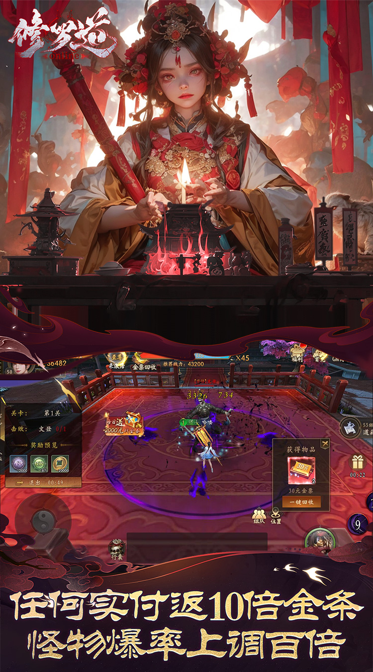 ★【超低折扣】充值仅需0.05折,超低折扣,助力成长 ★【进游福利】上线送全套僵尸家族主题套装,200级还可领取10张648元充值卡 ★【七日福利】七日福利送满品鬼神-精卫,还送3件航海时代主题套装 ★【套装钜惠】首充大礼送全套霸王别姬主题套装,累计登陆及在线额外赠送全套城南旧事主题套装 ★【十倍返利】充值金条及直购礼包均可返还10倍金条,神级减负 ★【至尊抽奖】至尊转盘每日可抽取最多2000元免单代金券 ★【GM商城】GM商城可低价购全版本所有鬼神,助力快速成长 ★【百倍爆率】每日完成活跃任务可自动获得一次百倍爆率副本挑战机会 ★【茅山天师】与赫赫有名的驱魔家族南毛北马一起施展道术神通,重返最原汁原味的港风捉鬼世界