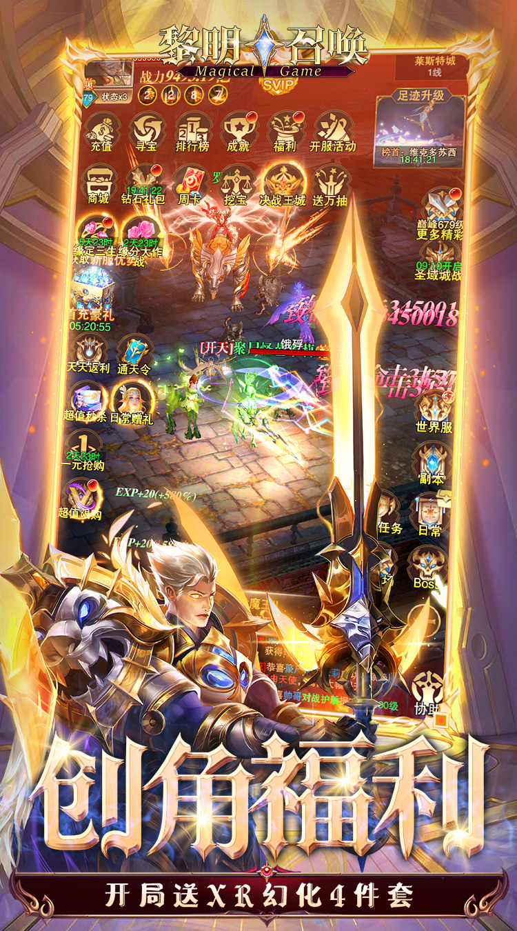 1.【GM福利】买特权享受无限钻石钻石领取 2.【GM商店】全新GM商店,无限钻石无限刷 3.【GM首领】全新GM首领,刷怪肝大量泰坦币 4.【充值福利】所有充值永享0.05折返1倍代金券 5.【进游豪礼】开局送XR幻化4件套、8888大礼包 6.【满星福利】累计7天登陆送满星XR时装套 7.【送2000代金券】活跃度奖励天天送2000代金券 8.【送10000充值卡】做任务天天最高领10000充值卡 9.【送1000抽】做任务天天最高领1000抽寻宝券