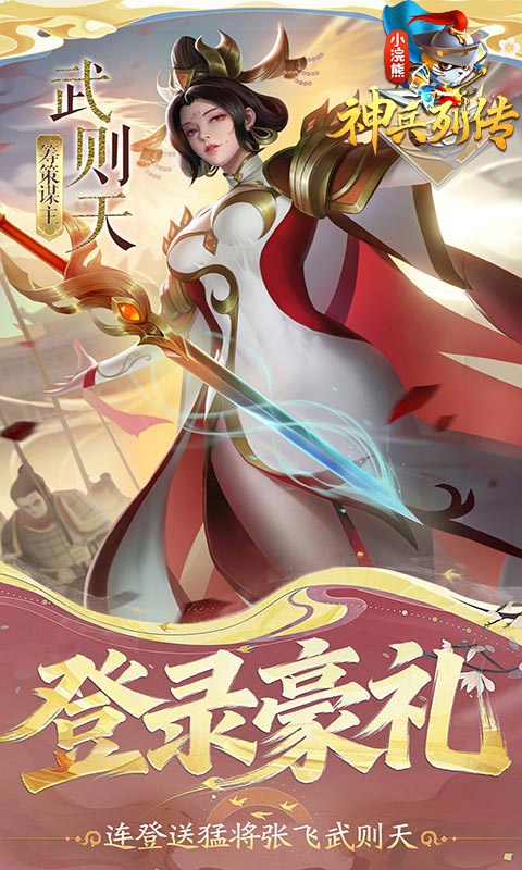 1、【福利礼包】输入礼包LC666即可领取:水浒名将·林冲,零充玩家直接毕业! 2、【超低折扣】全场充值享真实0.1折,史上最低,诚意满满! 3、【上线有礼】上线即送仁德之君·刘备,附赠全套极品橙装,开局即巅峰! 4、【在线豪礼】在线奖励免费领四系传说自选,强力神将随心配,阵容成型快人一步! 5、【登录豪礼】登录2天送万夫莫敌·张飞,登录5天领四系核心自选,登录7天得四系神兵精华自选,登录8天最终豪礼——顺天女帝·武则天! 6、【满星神将】完成日常与新手任务,传奇花木兰直升满星,顶级神将零养成压力! 7、【海量抽卡】闯关就送5000连抽,无尽火域再送5700抽,推图十连停不下来,神将招募拿到手软! 8、【每日签到】福利天天见!每日签到领648元红包,海量福利领不停! 9、【双倍红包】活跃任务每天送1136元红包,通天塔挑战再送20000元!海量红包轻松拿,资源购买无压力!