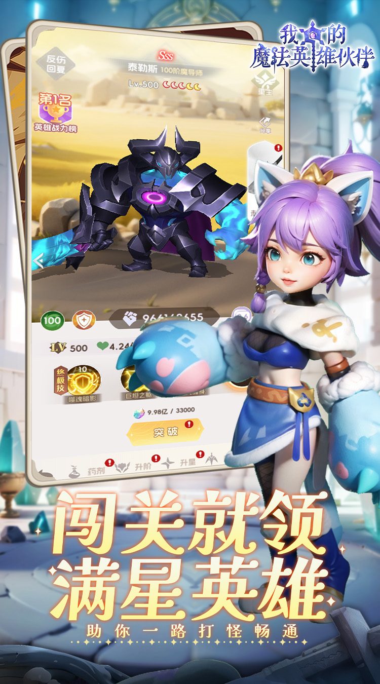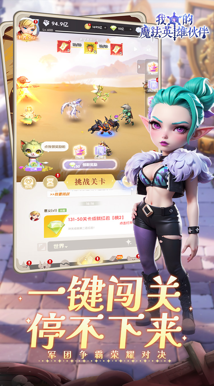 《我的魔法英雄伙伴(0.05折返1倍现金券)》是一款非常好玩又有趣的奇幻放置游戏,其采用了独特的卡牌策略玩法,它将带你进入一个充满奇幻与魔法的世界!收集上百位特色英雄,培养你的专属魔法团队。华丽的魔法特效和精美的卡牌立绘,能够瞬间燃爆你的眼球,为你带来视觉盛宴。主打就是休闲不伤肝,一键式的放置操作,不管在哪里,随时随地随心随意都能来上一局,战斗过程和闯关过程非常清爽利落,让人忍不住惊呼:“好家伙,卡牌游戏还能这么玩?!!”快来加入公会挑战世界BOSS,与好友一起征服魔法大陆吧!