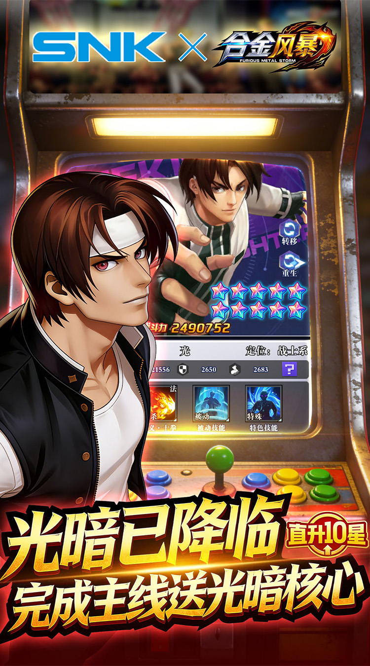 以SNK经典格斗游戏《拳皇》为蓝本,化身格斗导师招募草薙京、八神庵、不知火舞,集结三神器队、音巢组织、大蛇一族等传奇势力,组建最强战队征战KOF大赛!从初赛舞台启程,挑战极限流道场,血战音巢基地&大蛇封印,最终登顶格斗之巅,探寻拳皇终极奥义!