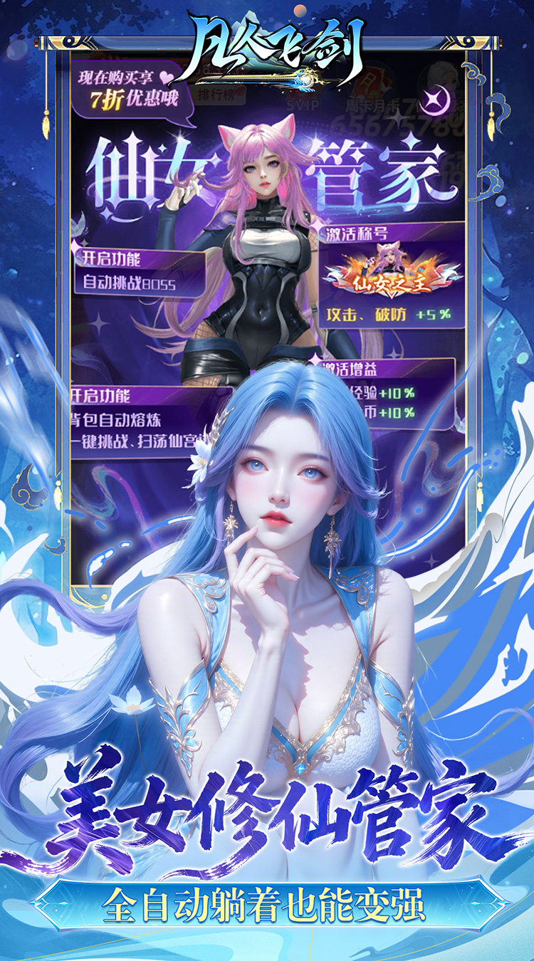 《凡人飞剑》是一款高福利休闲手游。在游戏中,你可以通过参与各种玩法,轻松收集各种资源,搭配每一转转生装备。每天赠送大量元宝,良心高福利,零氪也能集齐每一转装备资源。参与活动,赢得一场场战斗的资源。每天上线极短时间就能轻松收资源,随玩随停,好玩又轻松!