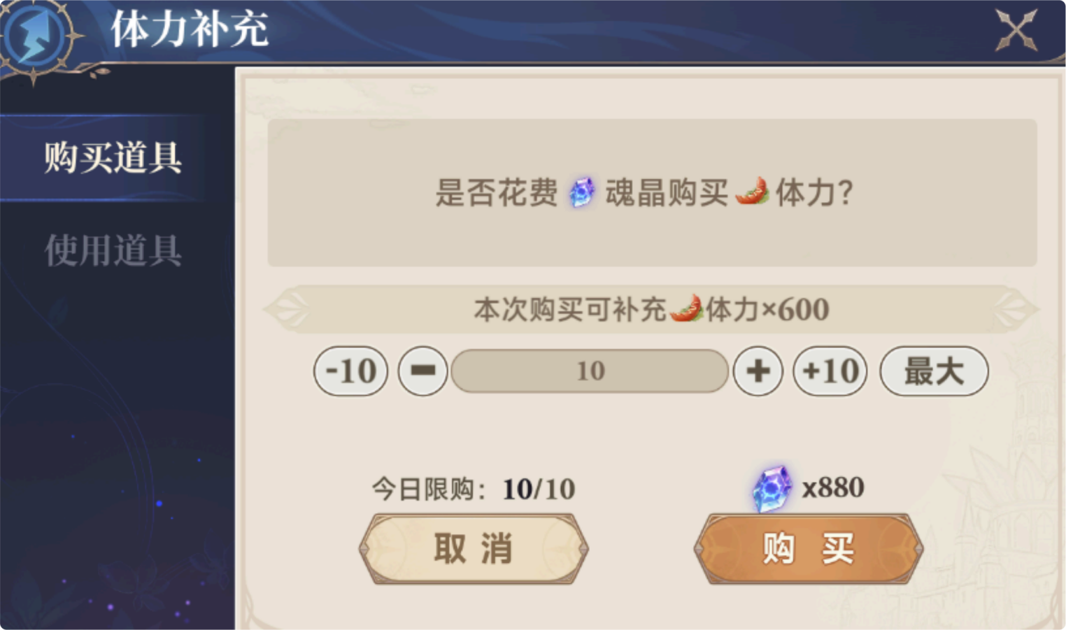 魂晶消耗