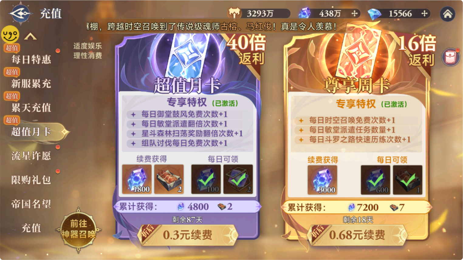 200:双月卡 + 成神之路18.88元+成神之路38.88元+每日特惠 +每日7元代金