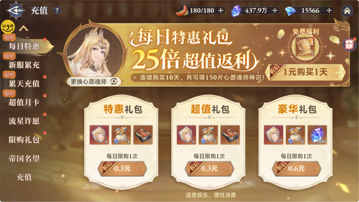 新区非常划算的性价比礼包 ,冲榜玩家推荐购买 ,佛系玩家可根据需求选择购买 ,只有九天时间