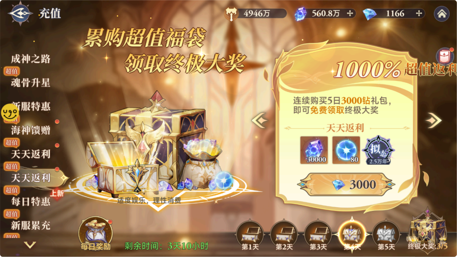 除了每日购买给的道具以外还有购买五天给的超级大奖 ,性价比很高